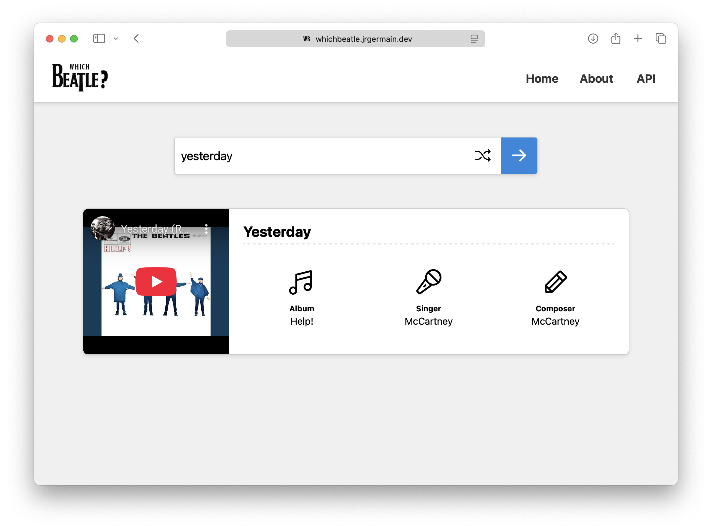 A site that lets you look up information about (and listen to) Beatles songs. The site also includes an API that other developers can use to leverage its data in their own projects.